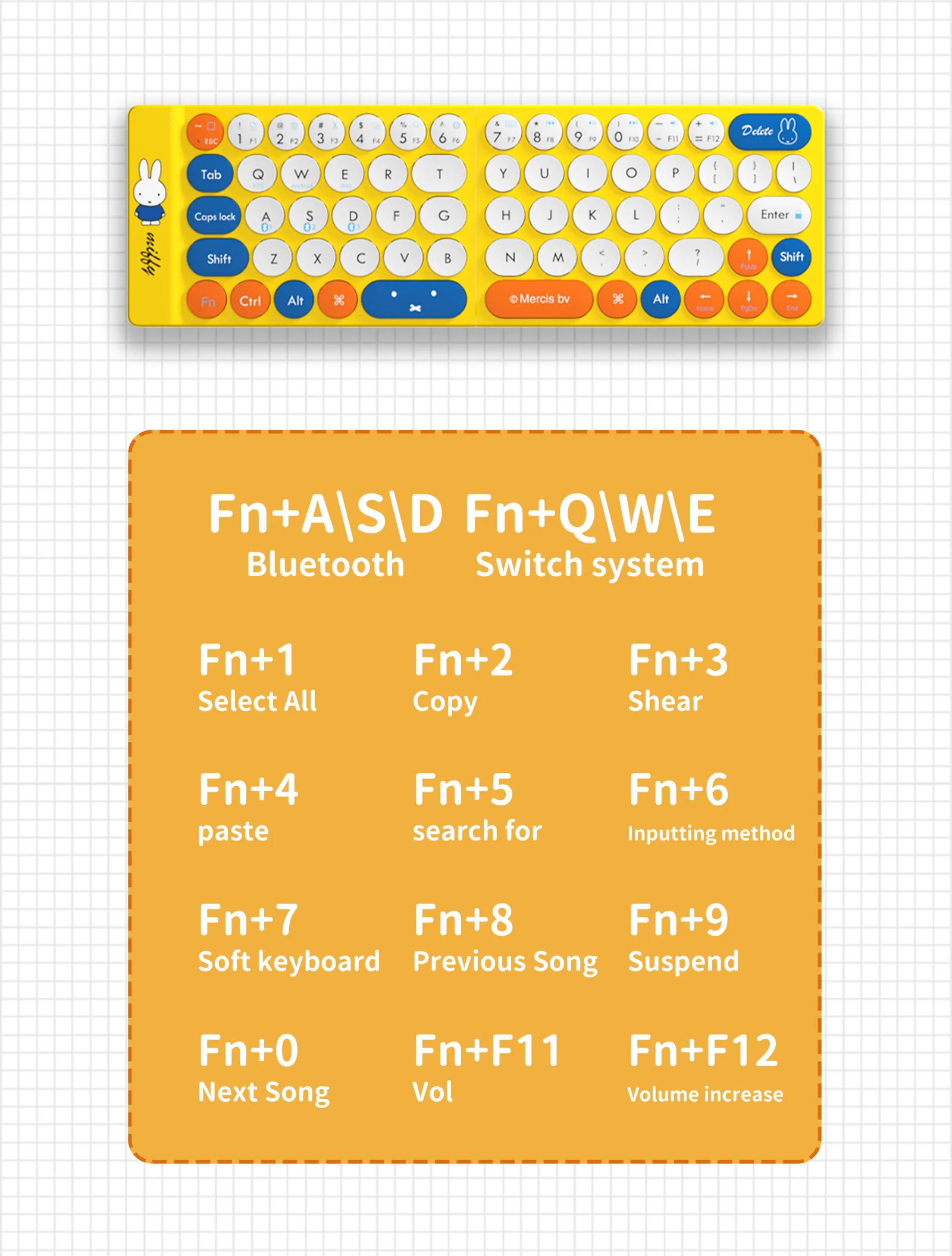 3.5mm SLIM Folding Keyboard + Miffy Pouch