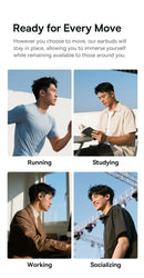 ✓ Natural awareness – Hear your surroundings clearly, making it easy to converse or stay alert while listening.
