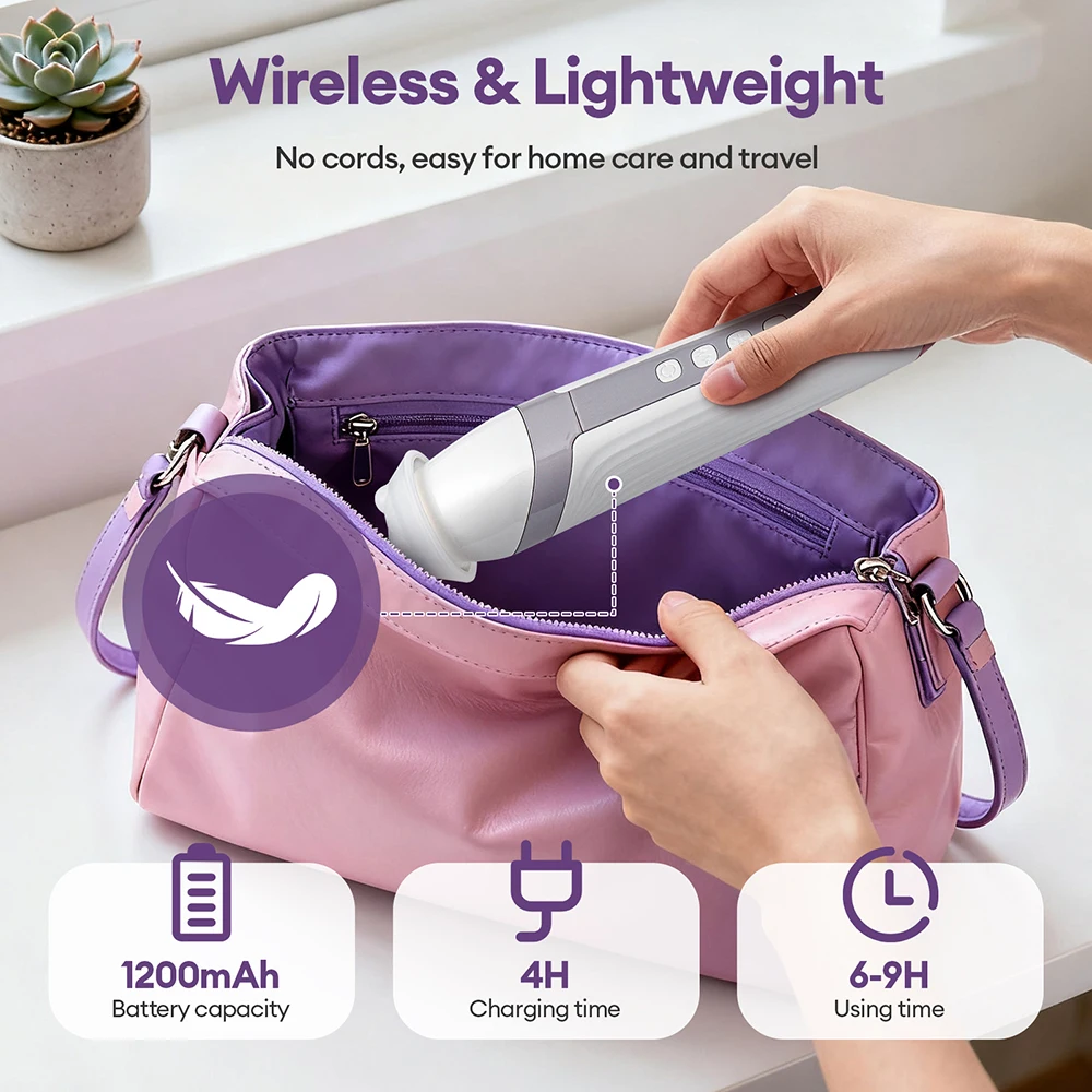 6.Wireless Use & Lightweight. Handheld flexible use, easy to carry, no restrictions on the place, you can skin care anytime and anywhere.