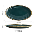 Luxury Vintage Dinner Plates with Gold Rim, Ceramic Oval Platter, Soup Bowl, Salad Bowl, Taste Plate, Green Crockery
