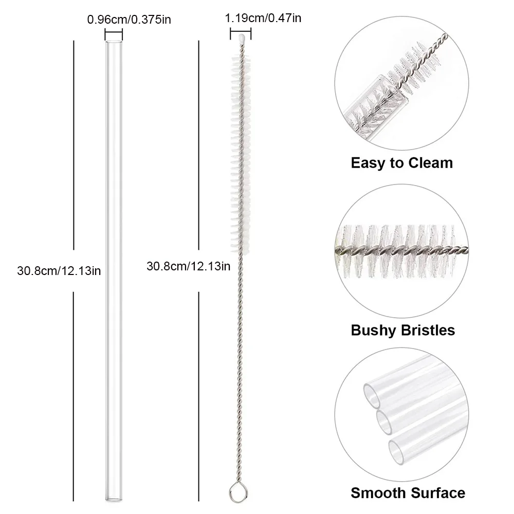 30cm 6 pcs Reusable Straw with Cleaning Brush, Plastic, Clear,Replacement Straw Compatible for Stanley 40 oz 30 oz Cup Tumbler