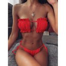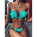Pleated Bandeau Thong Bikini Set