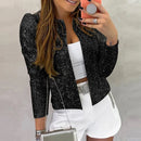 Street fashion stand up collar solid color party flash new jacket cardigan short casual versatile women