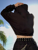 Women's Gothic Skull Print Casual Drawstring Short Hoodie Long Sleeve Top