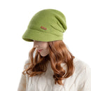 Women's Winter Outdoor Warm Pullover Hat Small Ear Protection Fashionable Beanies with Wide Brim Showing Face Plush Pile