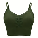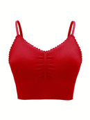 Women'S Plus Size Lace Wireless Bralette, Solid Color Polyamide 90% Elastane 10% Knit Fabric, High Stretch Comfort Full Coverage Sleep Bra, Removable Padding, Breathable Lingerie