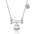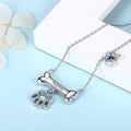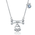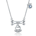 Xiaojing925 Sterling Silver Custom Dog Bone Paw Pendant Necklace Engraved Name and Birthstone Fashion Jewelry for Gift Free Ship